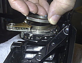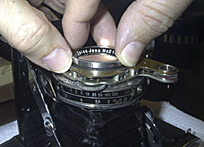 * Caution!! The lens MUST stop at or near the infinity position as it did before you removed the lens. If this does not occur, then you have started the lens onto the camera from the wrong position and must remove the front lens and start over from there.